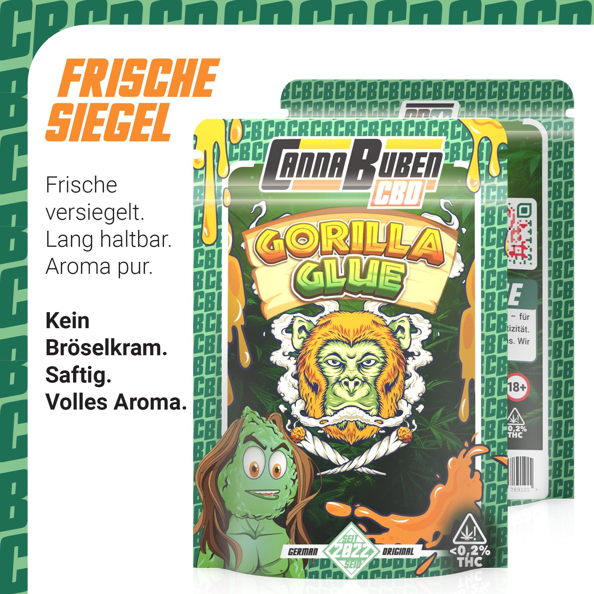 Die Gorilla Glue CBD-Blüten werden unter streng kontrollierten Bedingungen angebaut, ohne den Einsatz von Pestiziden oder chemischen Zusätzen. Jede Blüte wird handverlesen und mit größter Sorgfalt verarbeitet, um ein naturbelassenes und reines Produkt zu garantieren, das höchsten Qualitätsstandards entspricht.