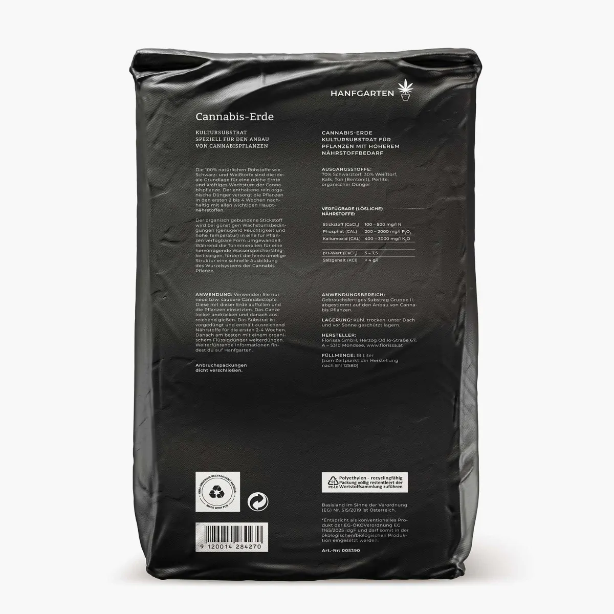 Unsere Premium-Hanferde ist das ideale Substrat für den Anbau von Cannabispflanzen mit hohem Nährstoffbedarf. Diese hochwertige Erde besteht aus 100% natürlichen Materialien wie Schwarztorf, Weißtorf und Kalk. Sie wurde speziell entwickelt, um das gesunde Wachstum deiner Cannabispflanzen zu fördern und stellt in den ersten 2-3 Wochen nach dem Umtopfen die optimale Versorgung mit Nährstoffen sicher.