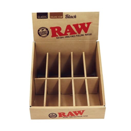 Verbessern Sie die Darstellung Ihrer Waren mit dem ansprechenden Design und dem markanten RAW-Logo dieses Karton-Displays. Beeindrucken Sie Ihre Kunden durch eine professionelle und wirkungsvolle Präsentation, die Ihre Produkte perfekt in Szene setzt.
