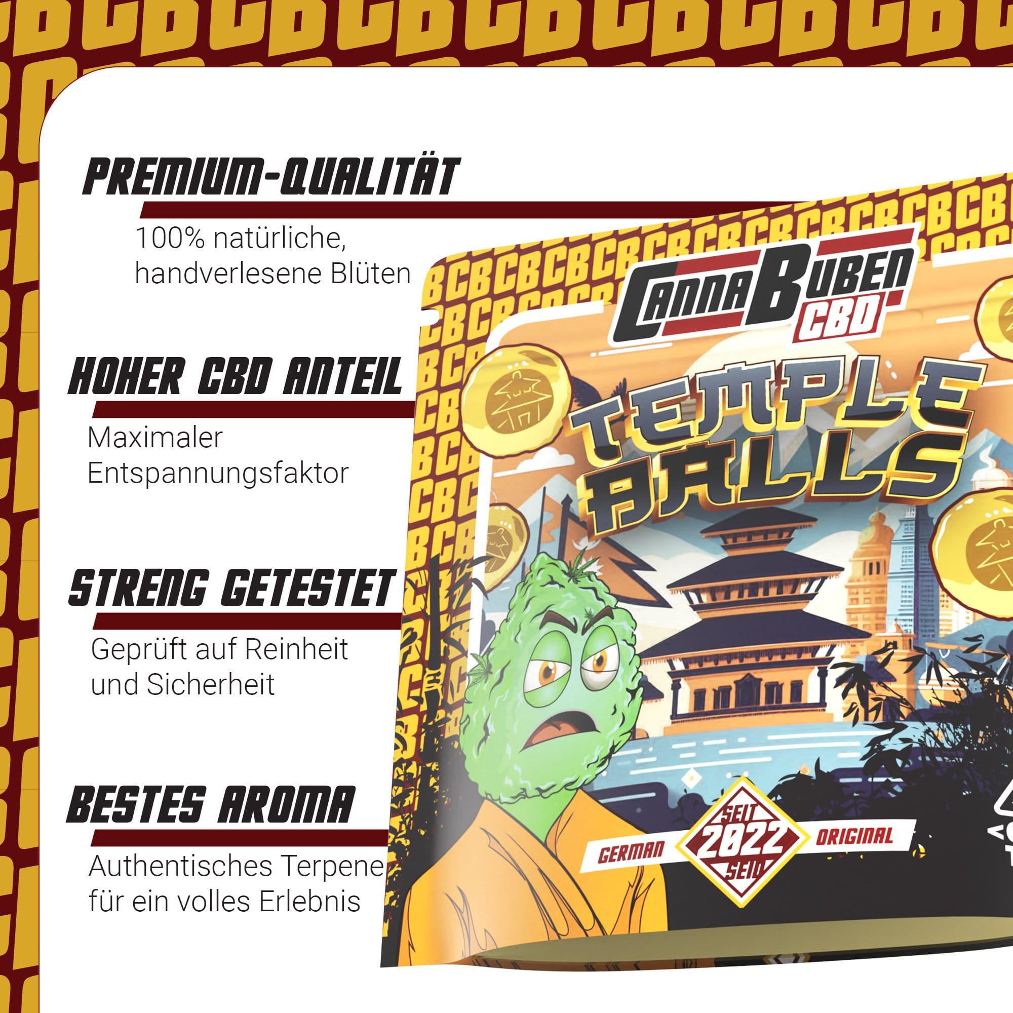 Unser Temple Balls CBD Hash wird nach traditionellen Methoden gefertigt, aus den besten CBD-Blüten gewonnen und mit äußerster Sorgfalt verarbeitet. Frei von chemischen Zusätzen und künstlichen Stoffen garantiert dieses Produkt höchste Reinheit und eine intensive, natürliche Wirkung.