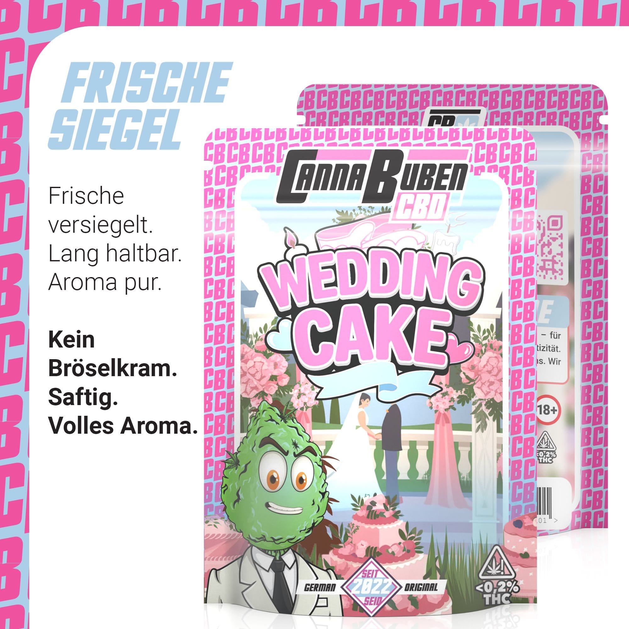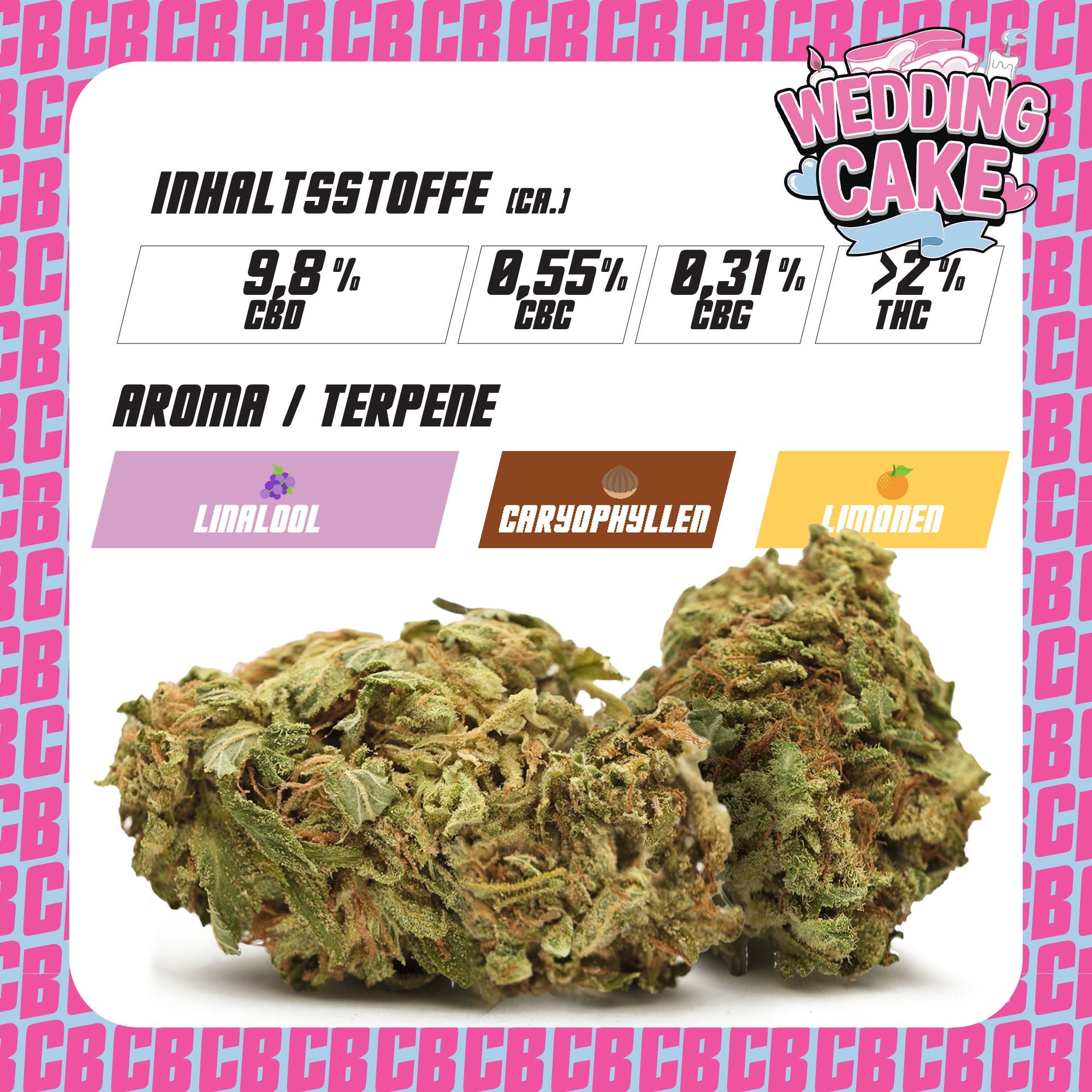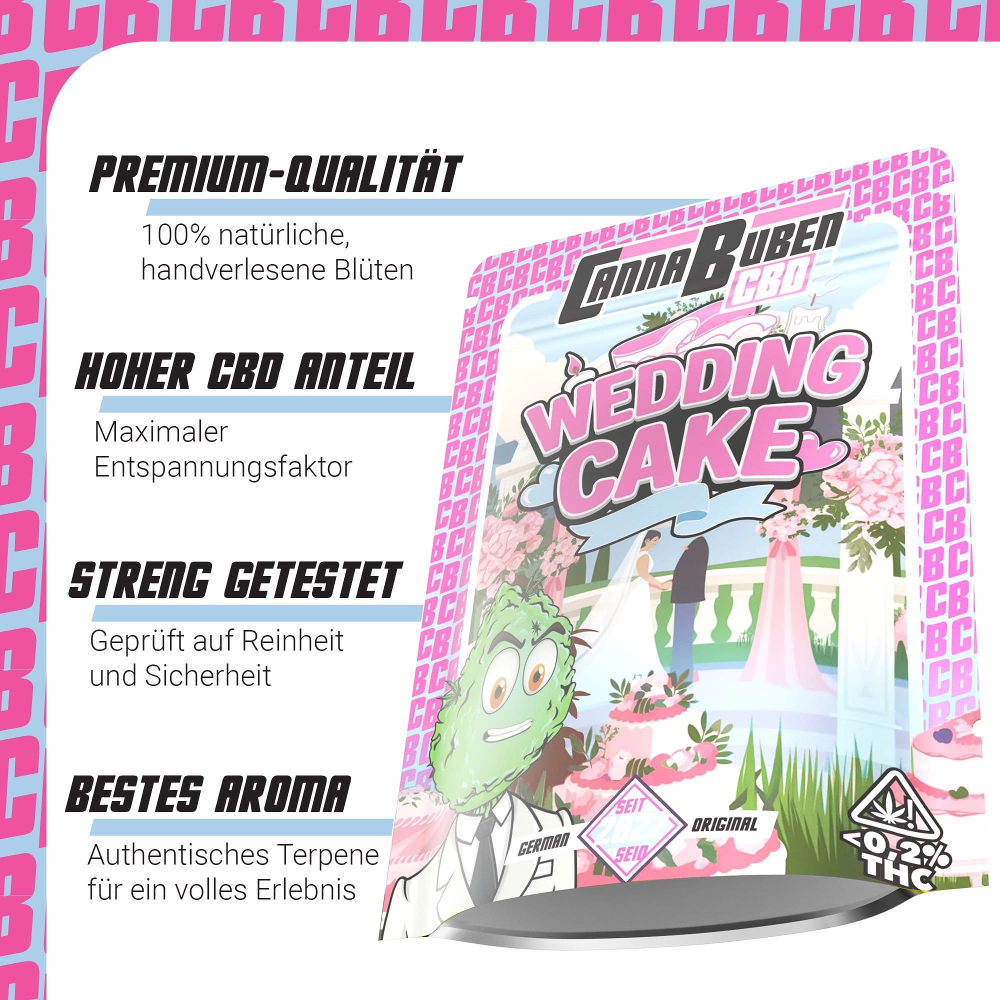 Die Wedding Cake CBD Blüten bieten ein einzigartiges Geschmackserlebnis mit süßen, cremigen Noten, die an frisch gebackenen Kuchen erinnern.Diese Sorte ist ideal für alle, die nach einem aromatischen und entspannenden CBD-Erlebnis suchen.